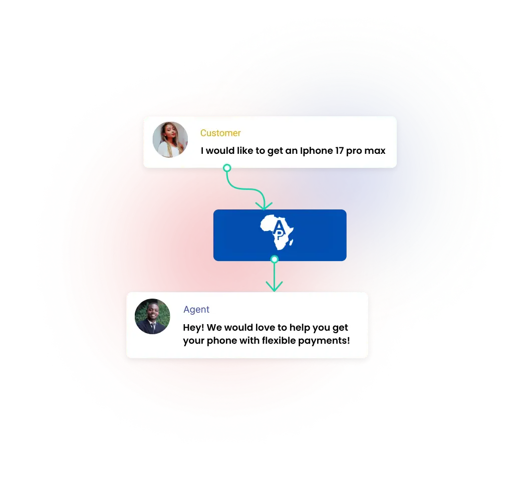 We offer device financing e.g Phones, Solar Panels ,Tv's and more